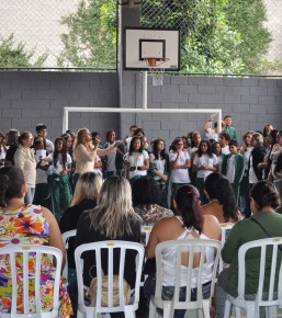 O Ensino Fundamental II preparou uma grande festa para todas as turmas. O 9º ano preparou o ‘Sabores de Família’, uma reprodução do MasterChef Junior em que as alunos preparam alguns pratos e suas mães avaliaram e deram notas. Já as turmas do 6º, 7º e 8º anos fizeram homenagem às suas mães do microfone com lindas fotos de presente.