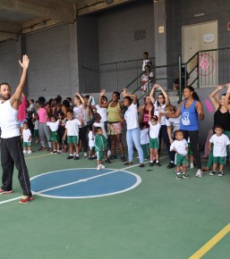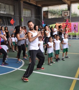 Na Educação Infantil, tivemos duas festas. A primeira foi das turminhas do Maternal e Pré-escolar, que prepararam uma aula de zumba super animada. Já as turminhas do Berçário receberam o Projeto En Ruta Por La Infancia, que veio diretamente da Guatemala para apresentar o teatrinho de fantoches ‘Barco a la Vista’ para nossos bebês e suas mamães.