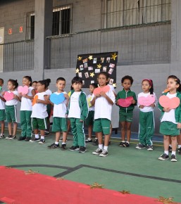 No Ensino Fundamental I, tivemos 3 festas diferentes, mas todas elas com uma homenagem bem parecida! Neste dia, todas as mães se tornaram estrelas e, por isso, foram enfeitadas com boás e óculos festivos e desfilaram em um tapete vermelho ao som de músicas animadas.