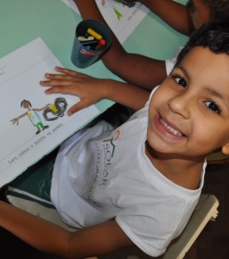 Hoje, dia 14 de setembro, a Turma do Pré-Escolar II do Solar começou um grande desafio: o lançamento da 1ª Unidade de Alfabetização. Utilizando método psicolinguístico, a “cartilha” é construída no dia-a-dia de sala de aula pelos próprios alunos.